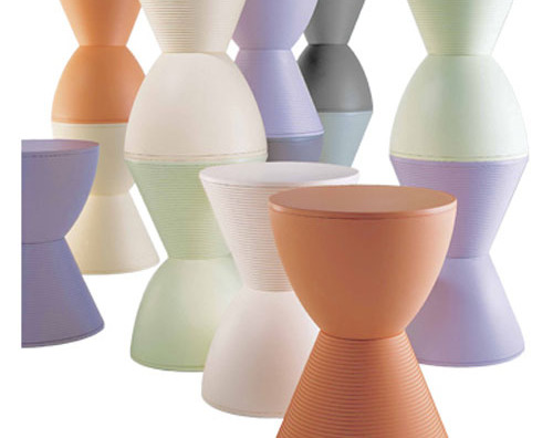 Thought up as a colourful game of building blocks, the Prince Aha stool is composed of two cones to resemble the shape of an hourglass. An entertaining and colourful accessory, a practical stool and stand to place beside the couch or the bed. The pastel colours, the texture of the material used and the geometric design make Prince Aha a flexible product, easily inserted into any setting. It is available in a range of pastel colours.