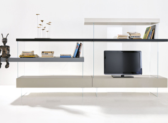 La libreria Air fa parte del sistema Air che comprende anche letti, tavoli e divani.Si tratta di una libreria realizzata con mensole o contenitori 36e8 sospesi su lastre di vetro. Il forte spessore delle mensole e il volume dei contenitori contrastano con la leggerezza della struttura portante in vetro, invertendo il normale ordine di fattori.Ogni composizione è una sfida alla forza di gravità e sembra fluttuare nell’aria, contribuendo a dare respiro alla stanza nella quale è inserita.Air è bifacciale e quindi posizionabile anche a centro stanza, dove riesce a rendere l’ambiente leggero e luminoso, non avendo la pesantezza delle librerie tradizionali.La libreria Air trova posto in molti ambienti della casa: soggiorno, salotto, camera e cameretta, studio, ma anche uffici, biblioteche, negozi e spazi pubblici in cui si voglia arredare con il design.